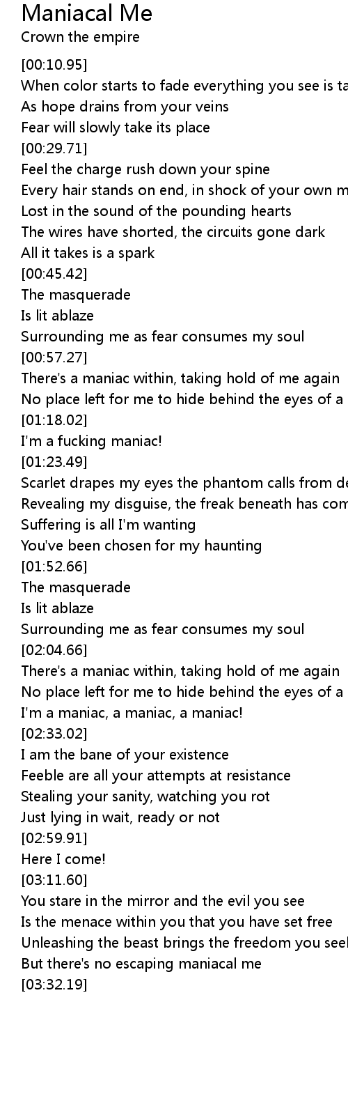 No place left for me to hide behind the eyes of a maniac |