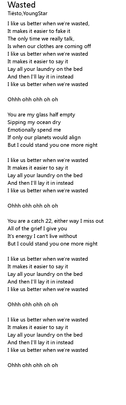 | I like us better when we're wasted | |