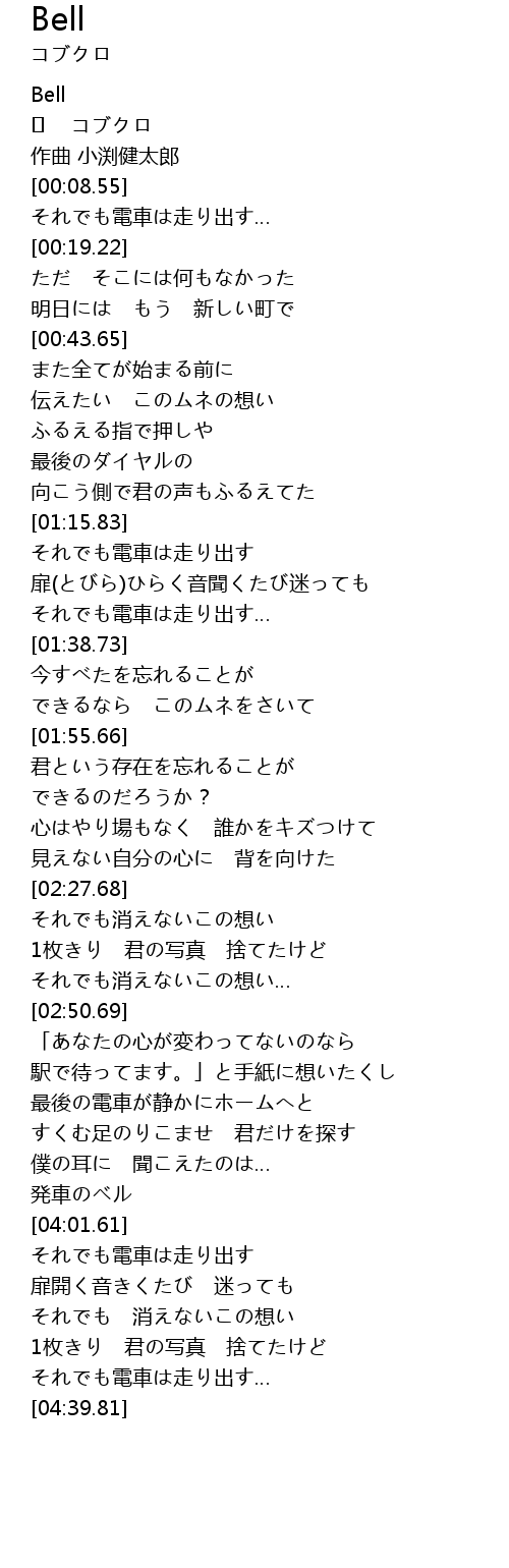 | [04:32.53] | それでも電車は走り出す… |