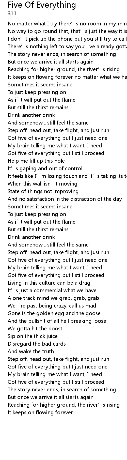 | Song | Five Of Everything |