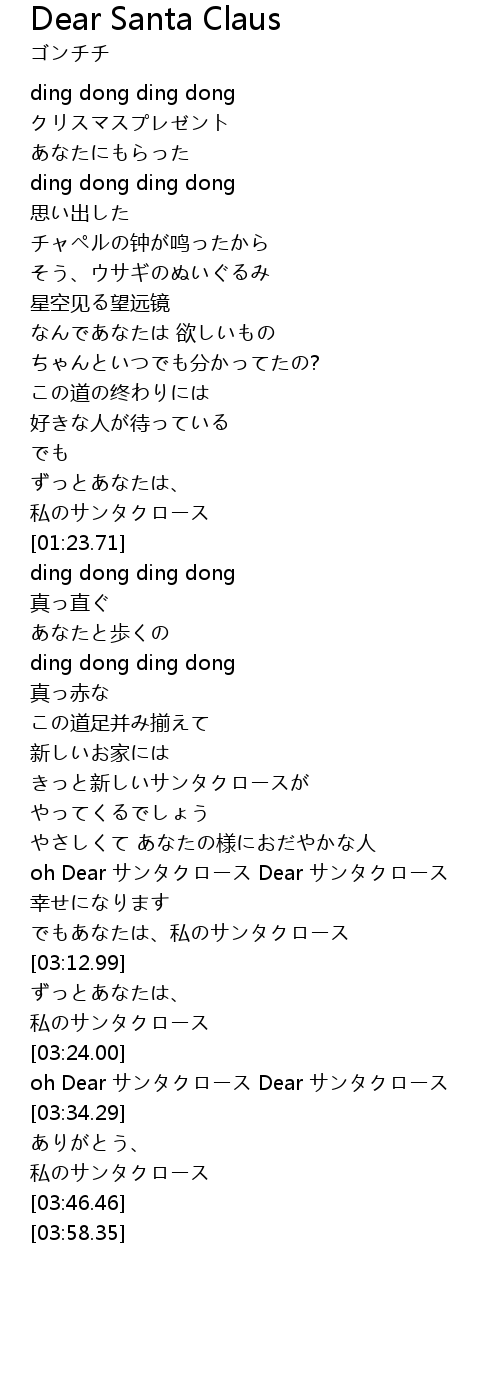 | [03:27.78] | oh Dear サンタクロース Dear サンタクロース |