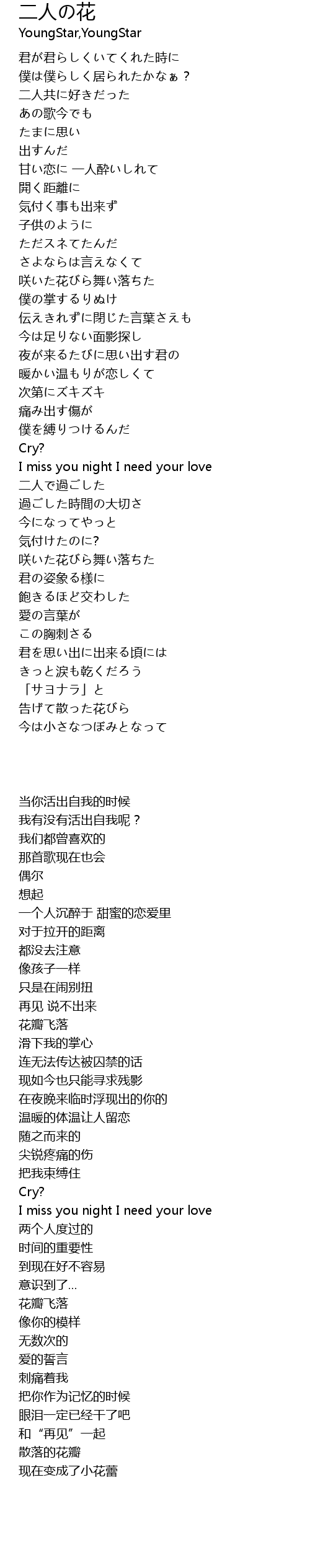 | [02:42.430] | 咲いた花びら舞い落ちた |