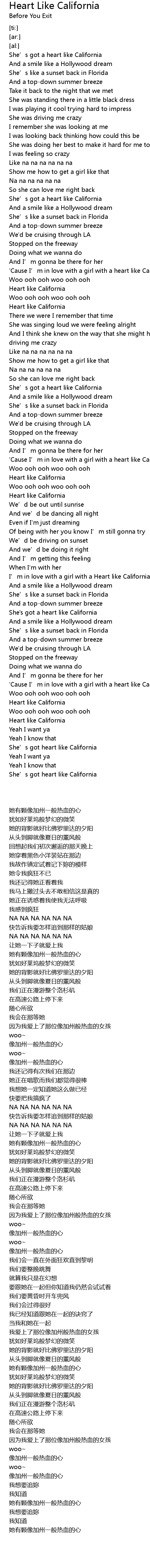 | [02:36.21] | I' m in love with a girl with a Heart like California |