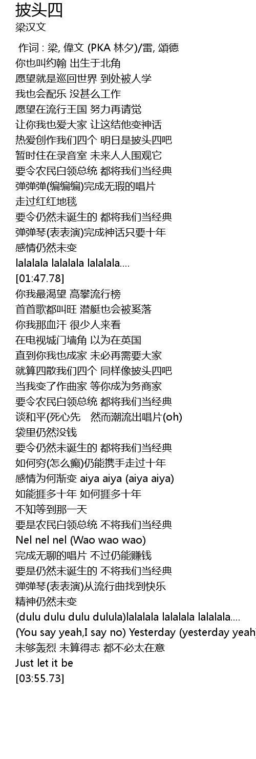 | [00:50.47] | 热爱创作我们四个 明日是披头四吧 |