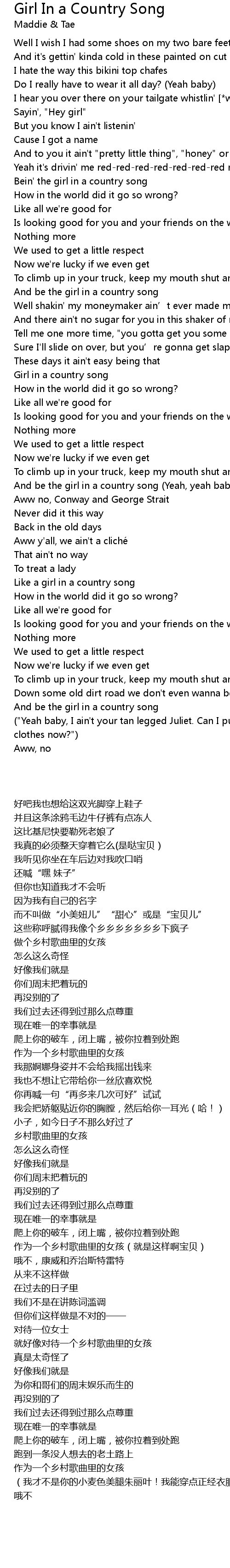 | [02:14.830] | And be the girl in a country song (Yeah, yeah baby) |