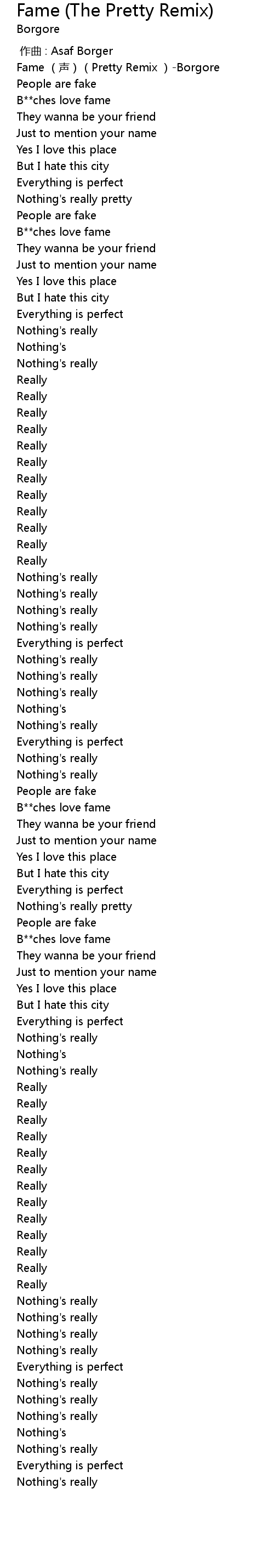 | [00:00.00] | Fame (声)(Pretty Remix )-Borgore |