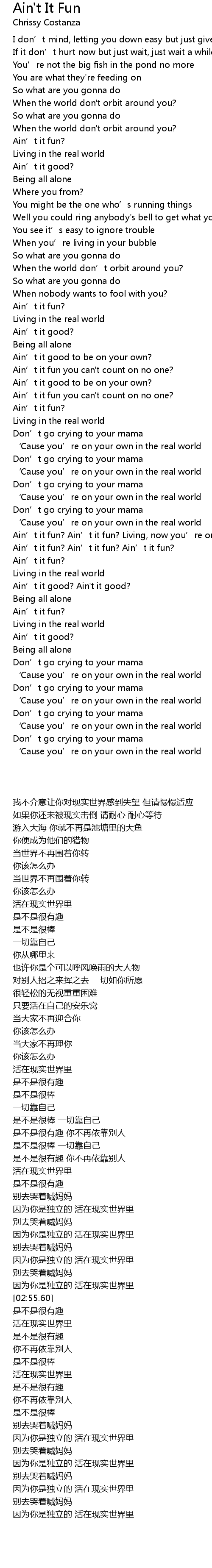 | [02:59.77] | Ain' t it fun? Ain' t it fun? Ain' t it fun? |