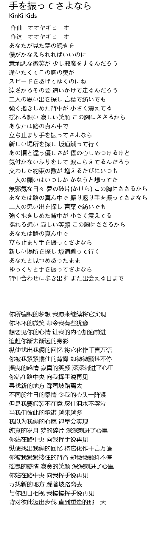 | [04:46.84] | あなたと見つめあったまま ゆっくりと手を振ってさよなら |