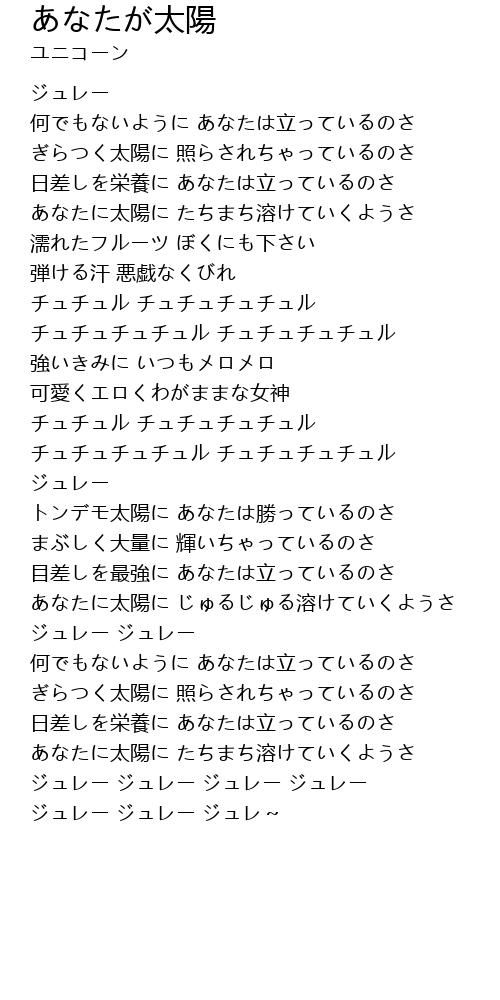 あなたに太陽に じゅるじゅる溶けていくようさ |