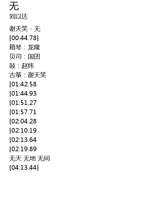 | [00:01.63] | 谢天笑 - 无 |