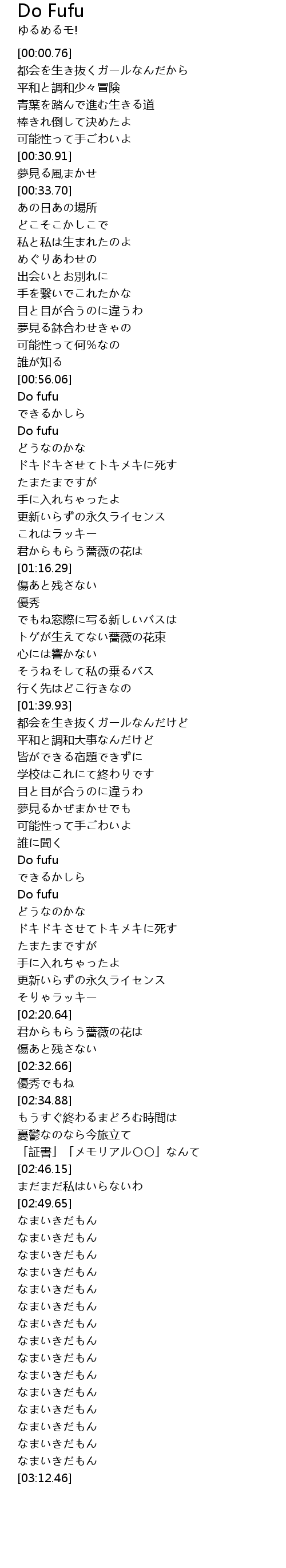 | [03:11.27] | なまいきだもん |