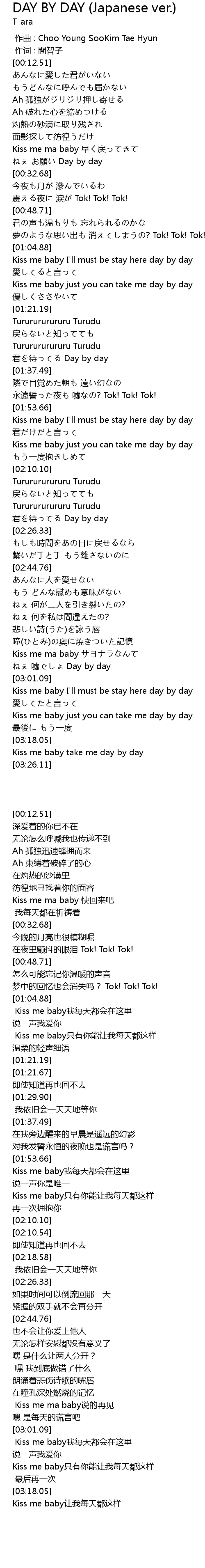 | [03:01.54] | Kiss me baby I' ll must be stay here day by day |