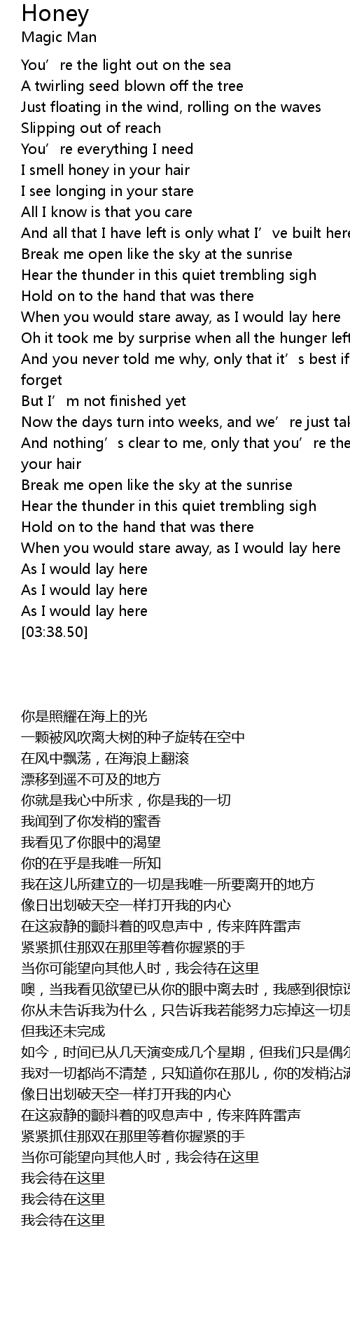 | [00:43.92] | I smell honey in your hair |