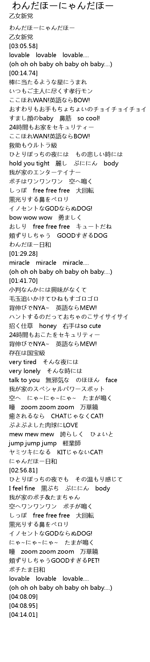 | [01:49.68] | bèi shēn NYA yīng yǔ MEW! |