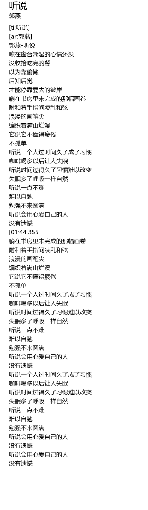 | [00:00.378] | 郭燕-听说 |