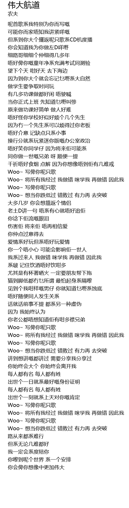 | [00:58.96] | Woo~ 写俾你呢只歌 |
