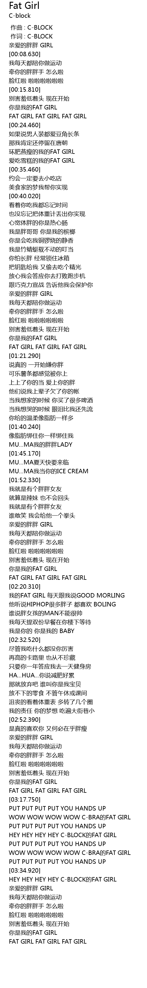 | [03:35.610] | HEY HEY HEY HEY C-BLOCK的FAT GIRL |