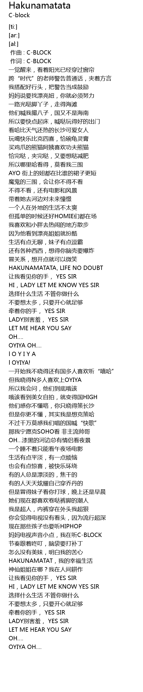 | [01:18.44] | HAKUNAMATATA, LIFE NO DOUBT |