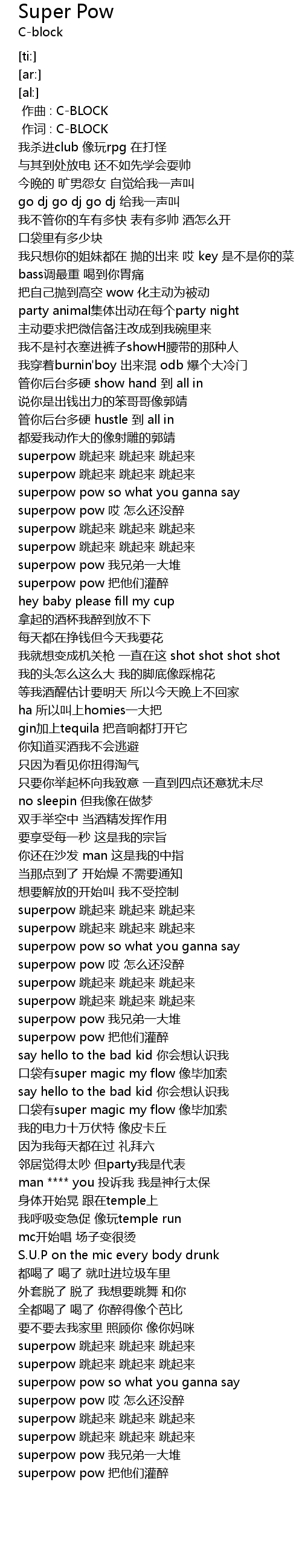 | [02:54.24] | superpow pow 把他们灌醉 |
