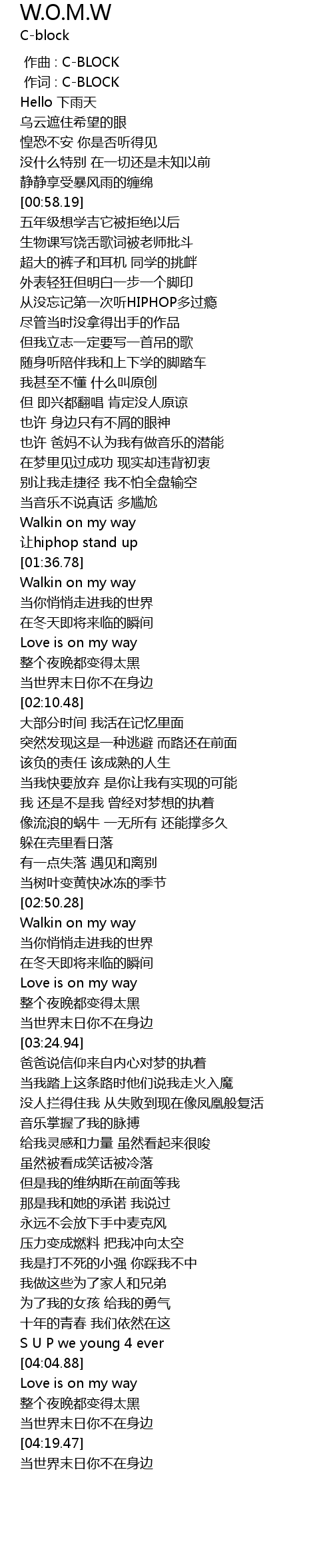 | [00:00.00] | zuò qǔ : CBLOCK |