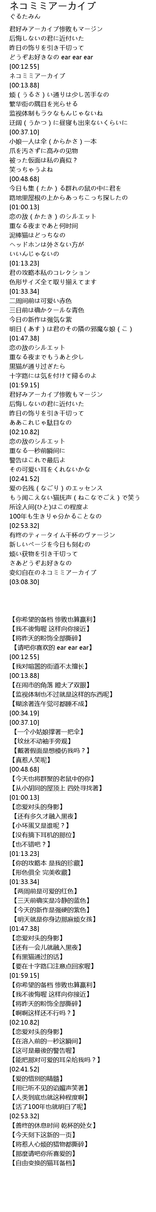 | [03:04.41] | 変幻自在のネコミミアーカイブ |