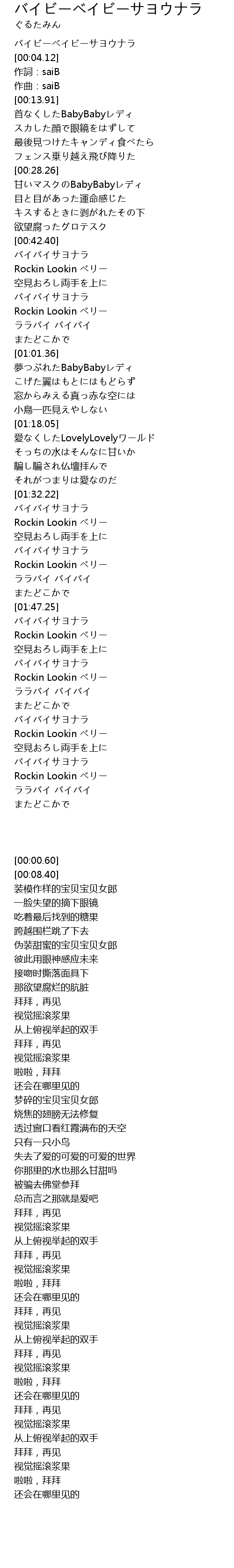 | [00:00.60] | バイビーベイビーサヨウナラ |