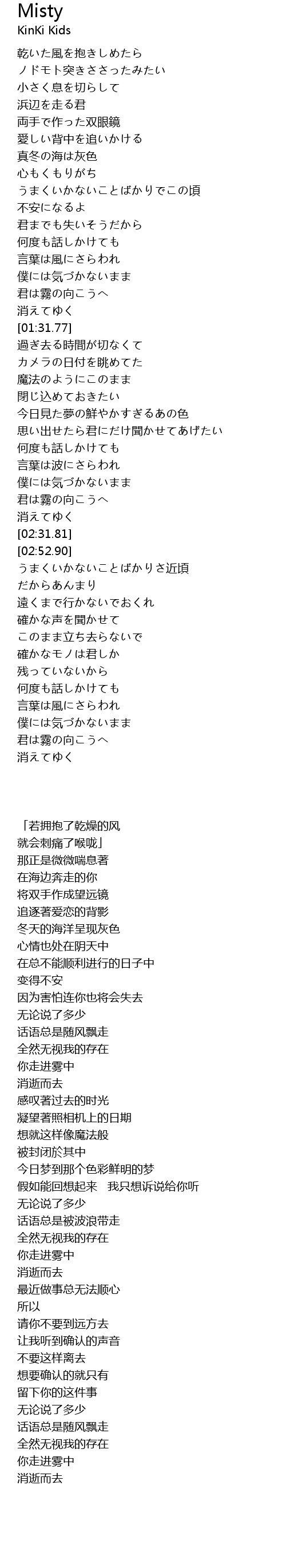 | [03:39.38] | 言葉は風にさらわれ |