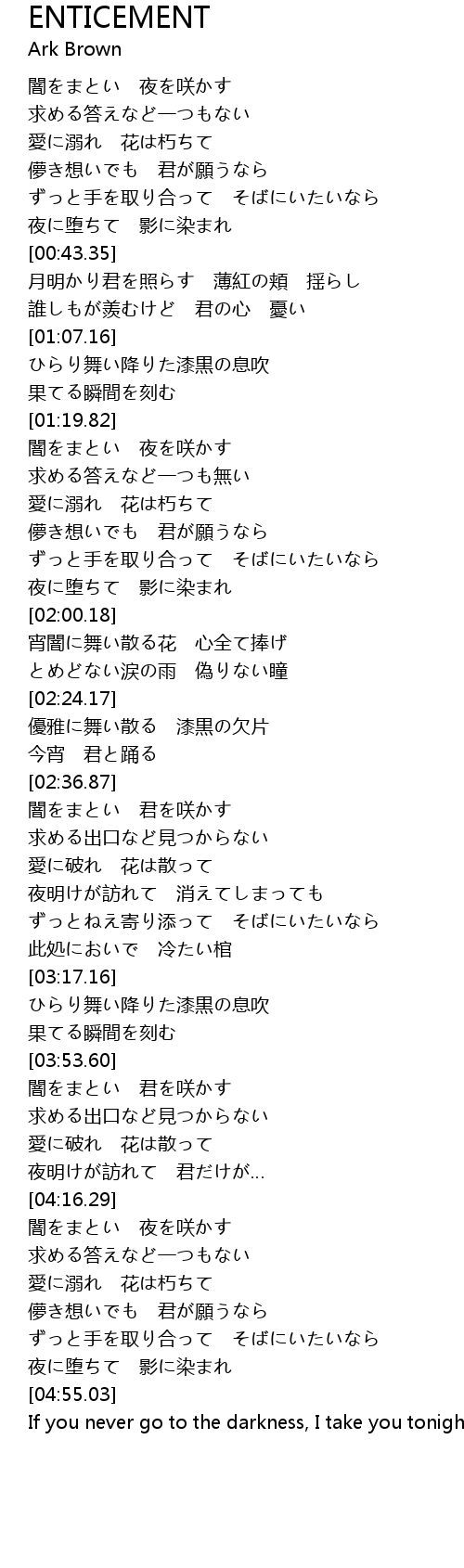 | [04:16.43] | 闇をまとい 夜を咲かす |