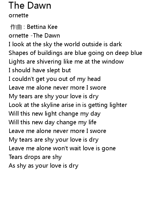 | [00:00.000] | zuò qǔ : Bettina Kee |