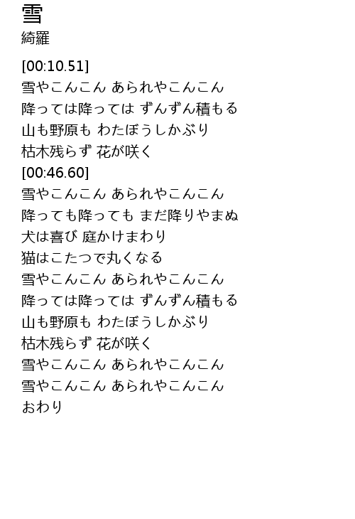 雪やこんこん あられやこんこん |