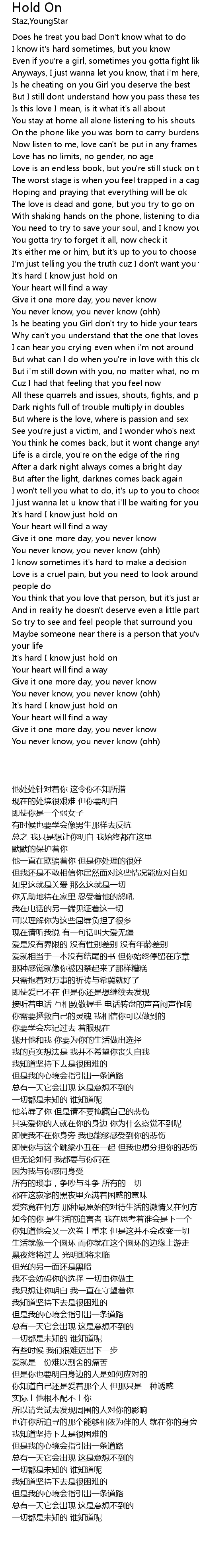 | [00:58.38] | It's hard I know just hold on |