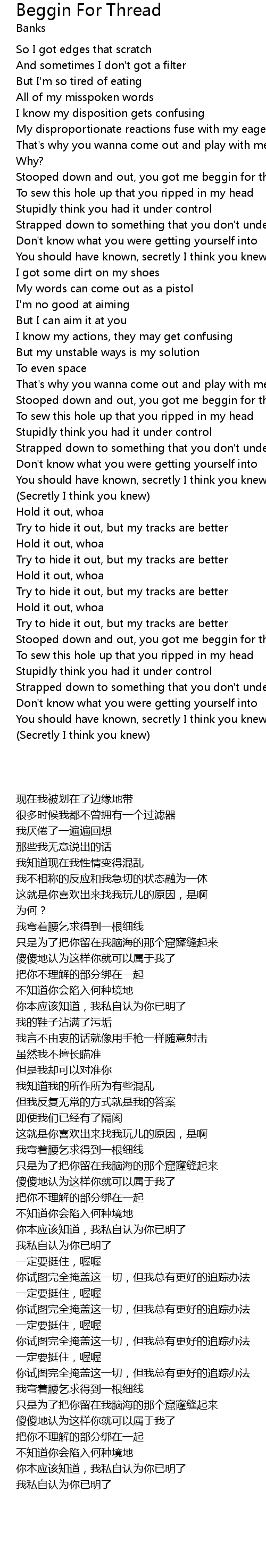 Stooped down and out, you got me beggin for thread |