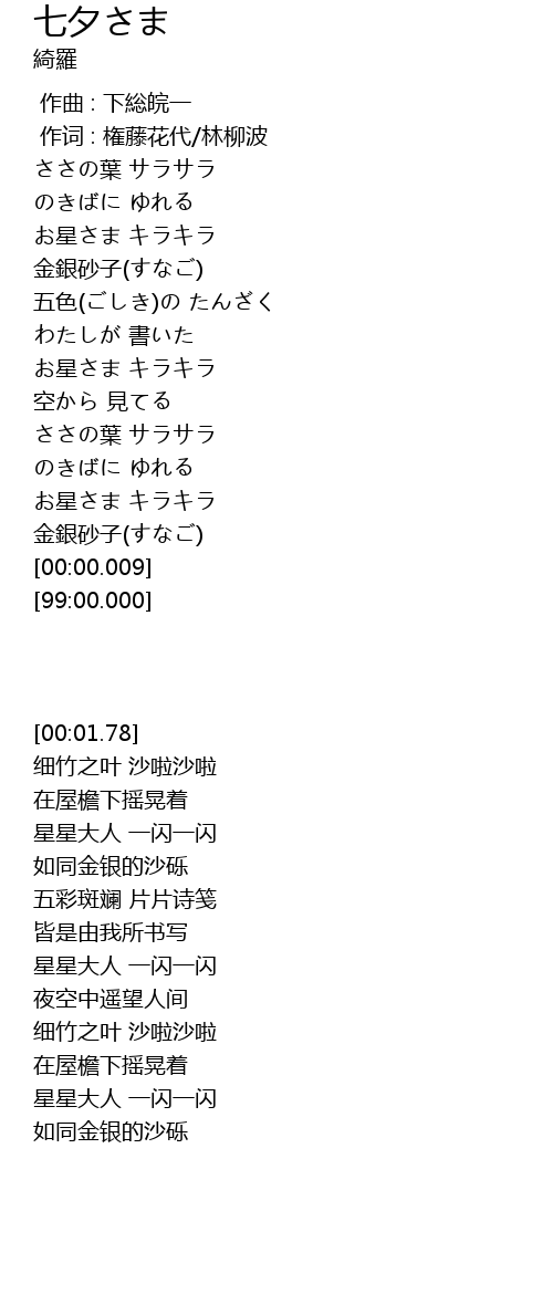 | [00:00.03] | 作词 : 権藤花代/林柳波 |