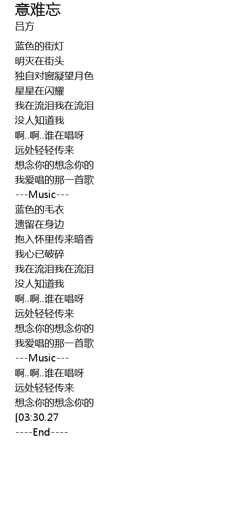 | [03:37.05][03:30.27] | 我爱唱的那一首歌 |