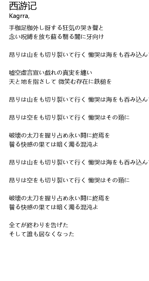 | 昂りは山をも切り裂いて行く 慟哭は海をも呑み込んで行く | |