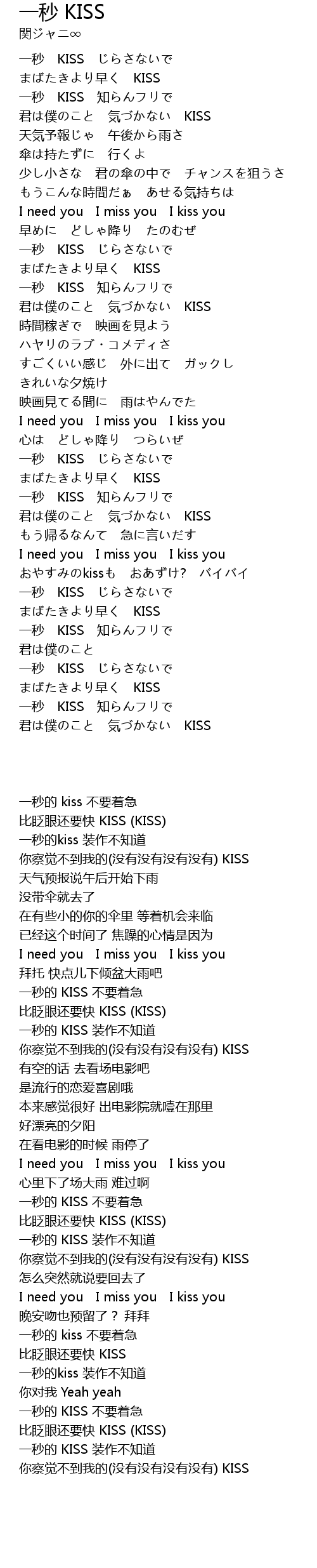 | [03:49.78] | yī miǎo KISS |