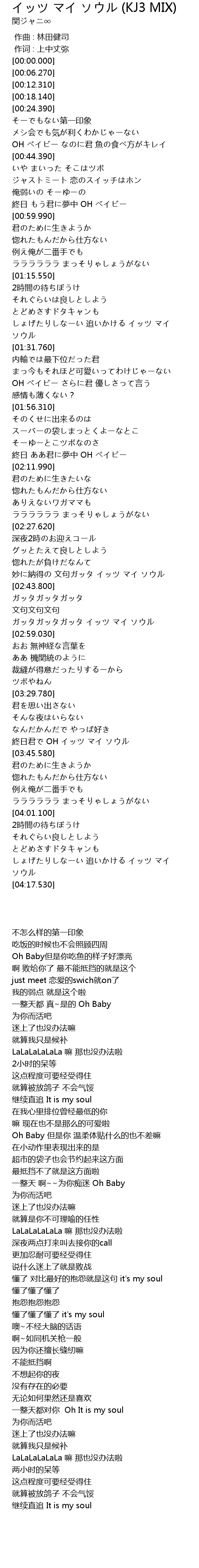 | [03:41.630] | 終日君で OH イッツ マイ ソウル |
