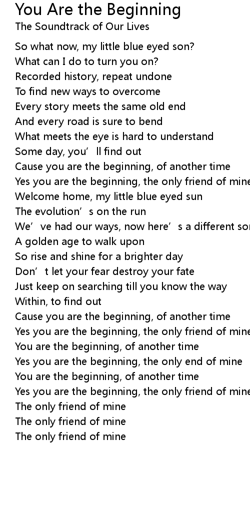 | Yes you are the beginning, the only friend of mine | |