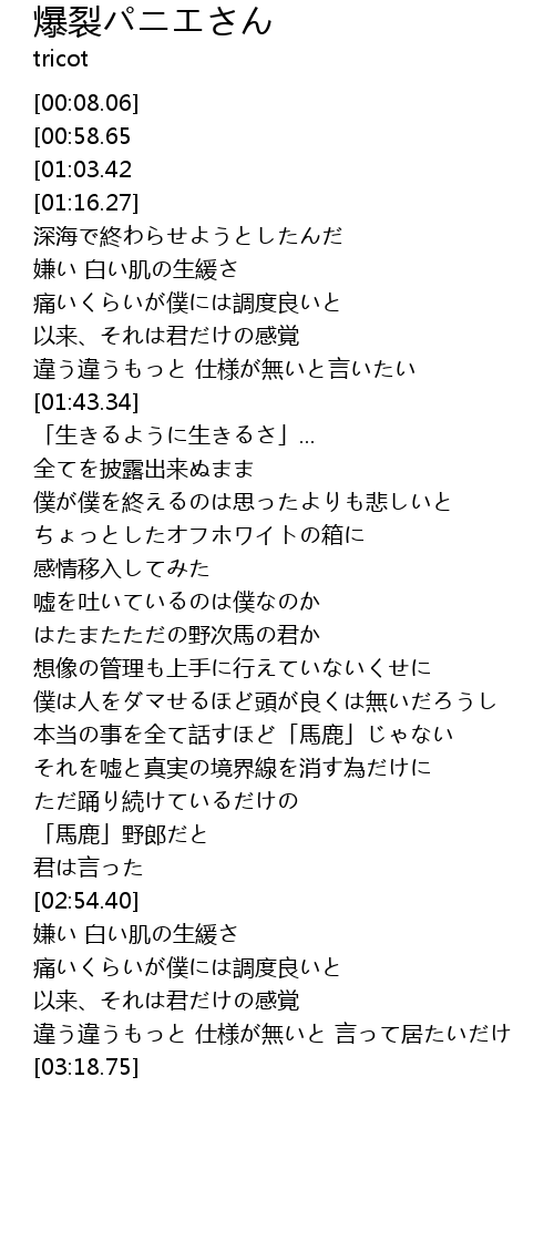 | [01:07.42][00:58.65][00:50.20][00:40.78] | プランクトンに侵された感情 |