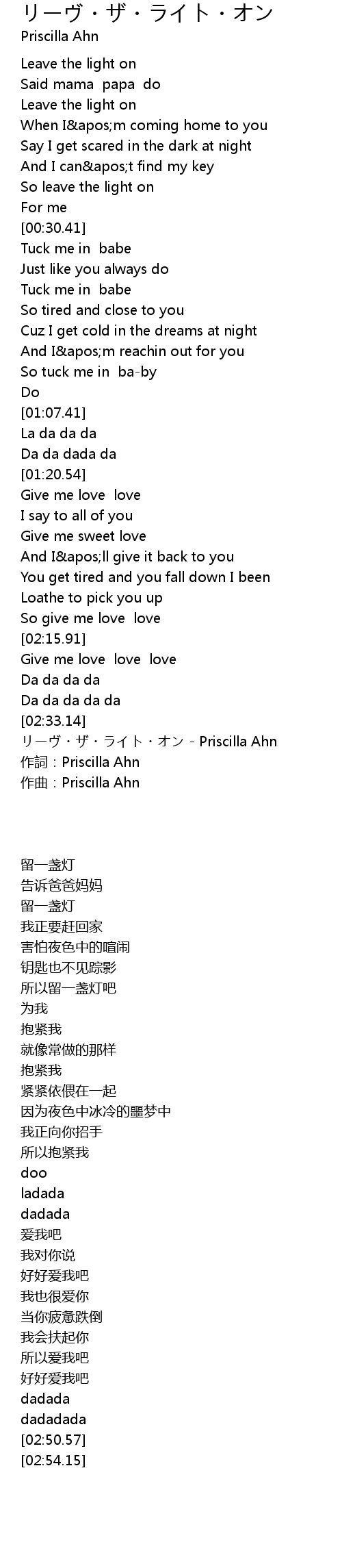 | [02:54.15] | 作詞:Priscilla Ahn |