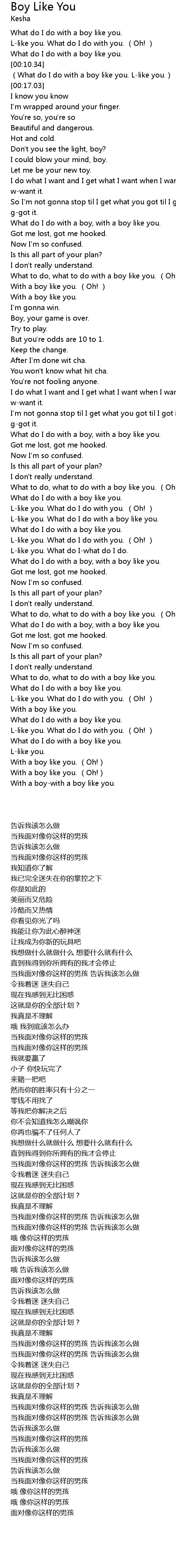 | [00:43.15] | What do I do with a boy, with a boy like you. |