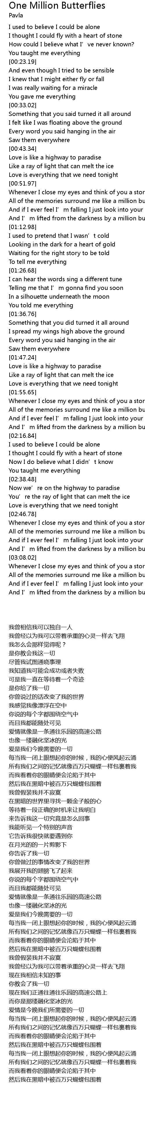 | [03:23.78] | And I' m lifted from the darkness by a million butterflies |