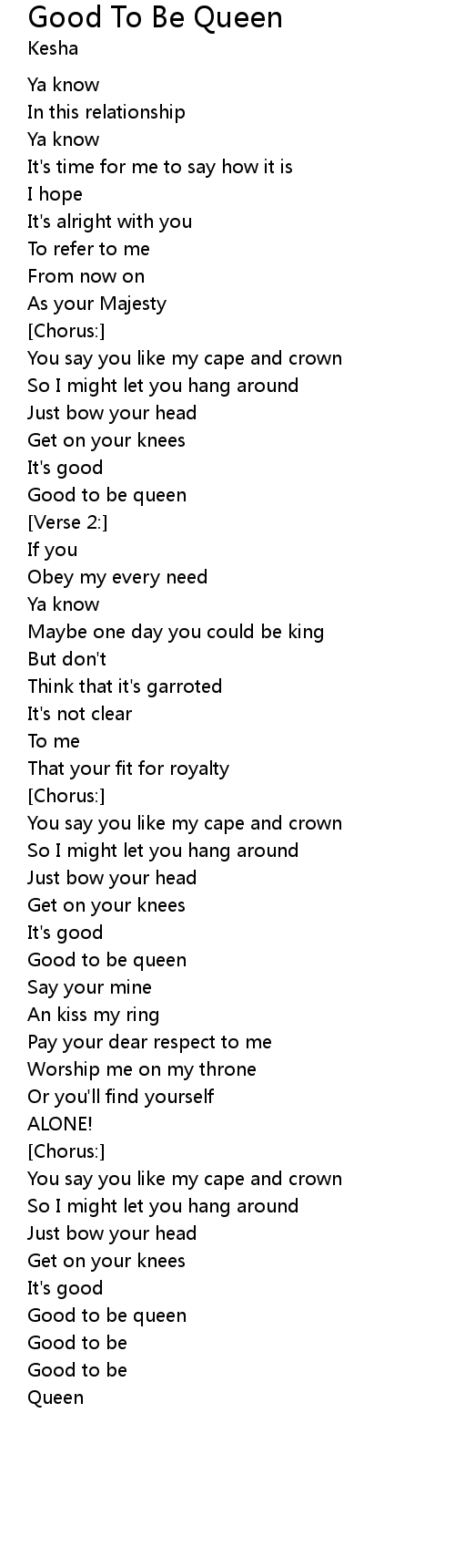 | Good to be queen | |