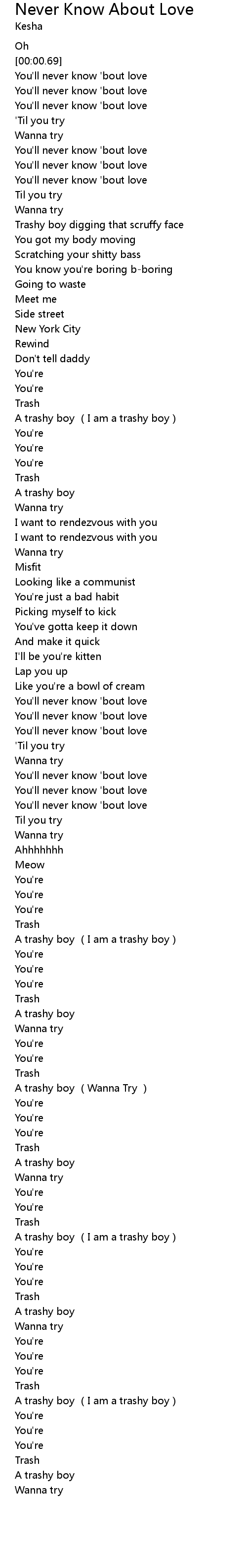 | [01:46.34] | A trashy boy (I am a trashy boy) |