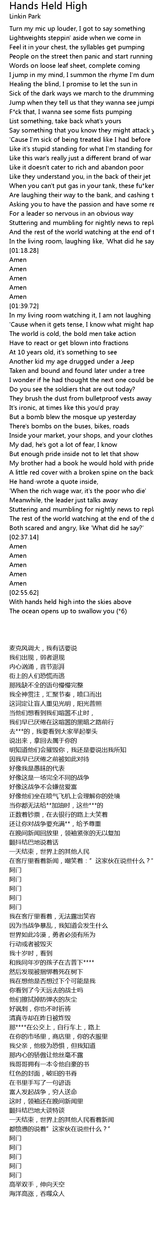 With hands held high into the skies above |