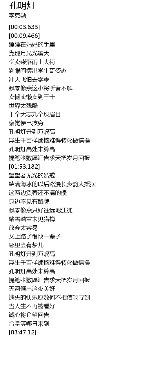 | [03:05.109] | 孔明灯高处未算高 |