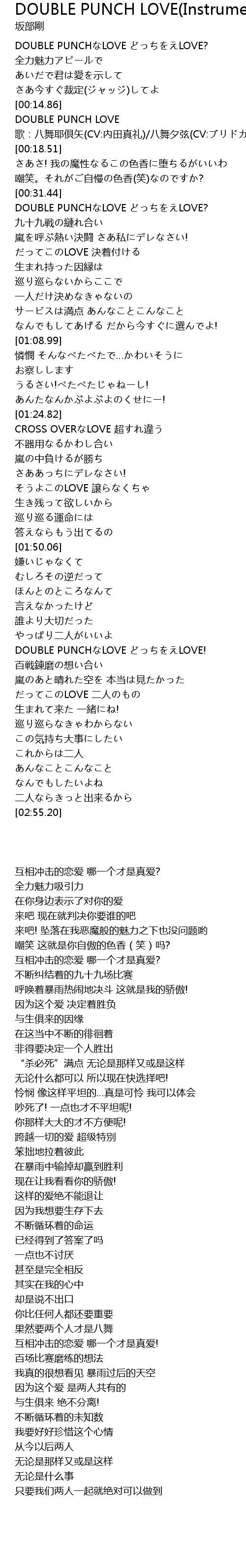 | [02:17.53] | DOUBLE PUNCH LOVE LOVE! |