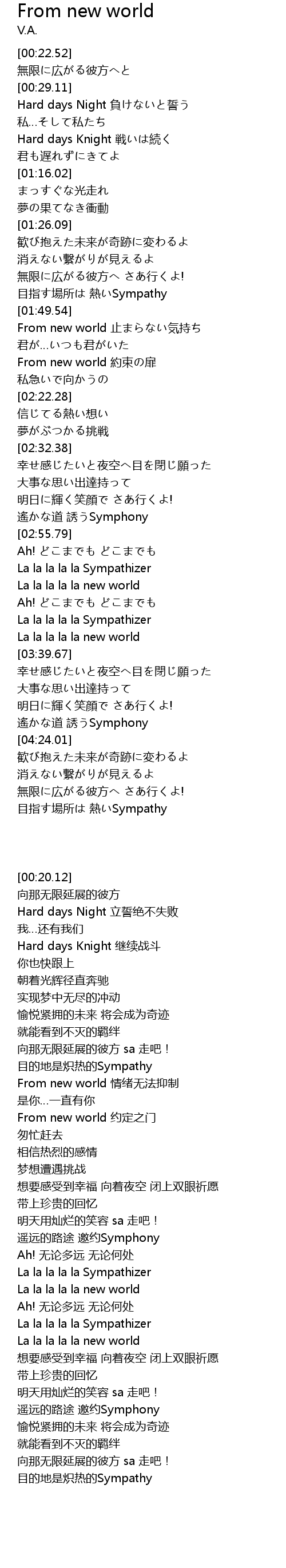 | [00:54.43] | Hard days Night 負けないと誓う |