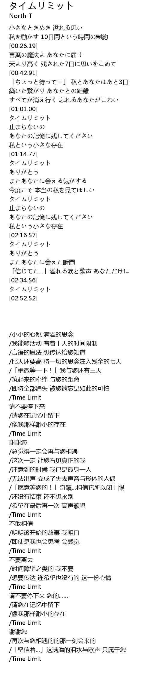 | [00:17.10] | 私を動かす 10日間という時間の制約 |