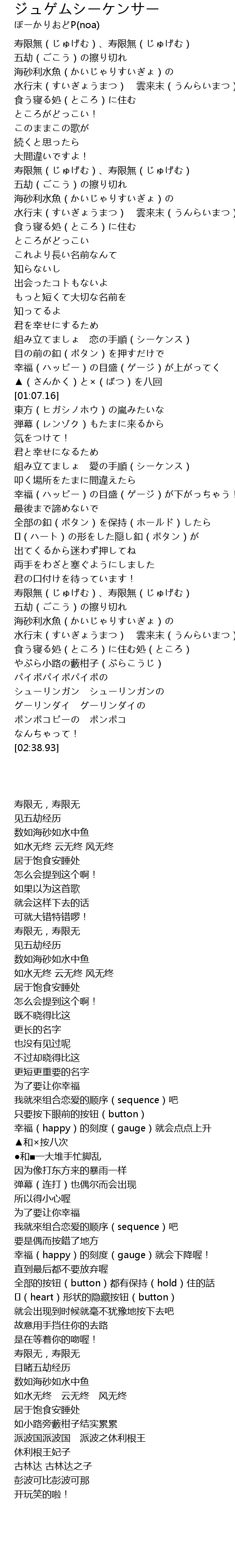 | Song | ジュゲムシーケンサー |